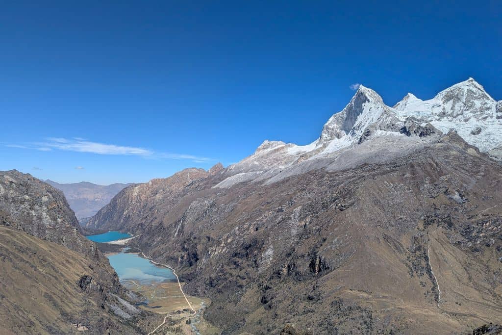Running through Huascarán National Park, the trail climbs to 4,750 meters, passing shimmering lagoons like Laguna 69 and valleys framed by giants such as Alpamayo and Huascarán, some of the Andes’ tallest peaks. It’s a landscape that humbles you with every step.